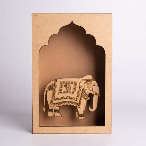 Box MDF Jharokha with Premarked MDF Elephant Cut Out