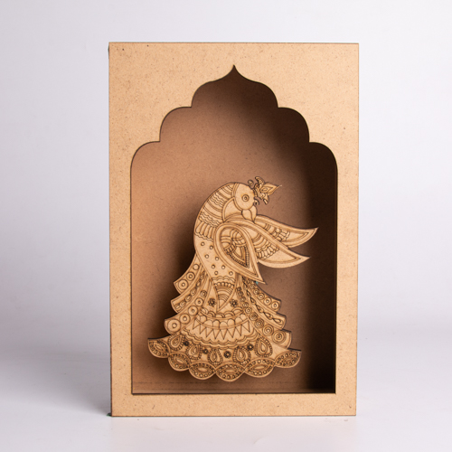 • A Box MDF Jharokha made from MDF (Medium Density Fiberboard) is a decorative wall hanging or window frame inspired by traditional Indian architecture. Jharokha, meaning "window" in Hindi, is a characteristic element of Rajasthani and Mughal architecture, often featuring intricate carvings and ornamental designs.