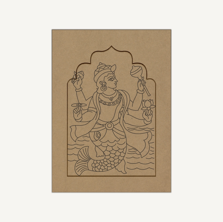 Matsya Avatar Pre-Marked MDF Jharokha Design 4 (Flat)