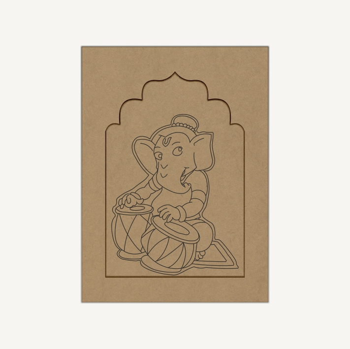 Ganeshji Playing Tabla Pre-Marked MDF Jharokha Design 4 (Flat)