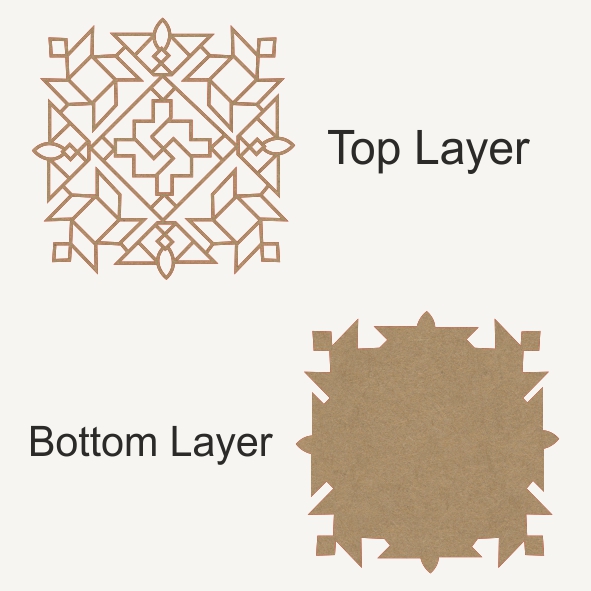 1. Material and Construction: The MDF Rangoli base is made from Medium Density Fiberboard, which provides a sturdy and smooth surface for creating intricate designs. MDF is chosen for its durability, allowing the Rangoli to be reused for multiple Diwali celebrations. The base can be left with a natural wood-like finish or painted in vibrant colors to enhance its visual appeal.