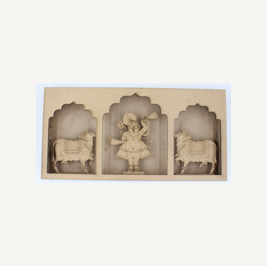 Shrinathji and Pichwai Cow Box MDF Jharokha Cut Out in MDF