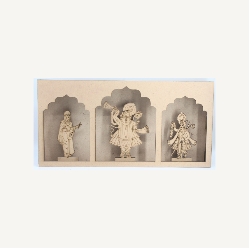 Shrinathji,Yamunaji and Mahaprabhuji Box MDF Jharokha Cut Out in MDF