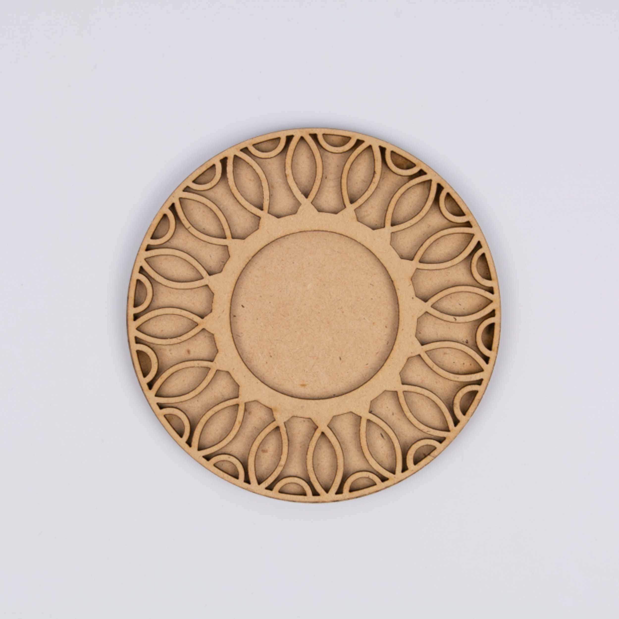 2. Material: The tea light holder is made from MDF, which is an engineered wood product composed of wood fibers and resin binder. MDF is chosen for its smooth surface, durability, and ease of customization, allowing intricate designs to be precisely cut or carved onto its surface.